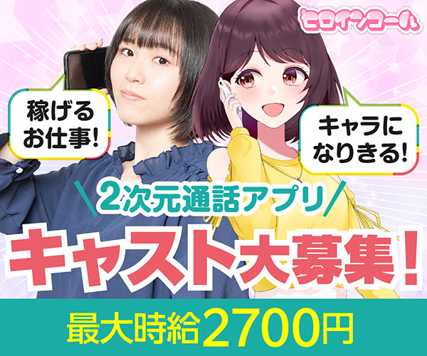 「ヒロインコール」では、あなたが2次元キャラクターになりきり、男性との会話を楽しむことで収入を得られます。キャラを演じてお話しするので素の自分を出す必要が無く仕事できる点が魅力的と言えます♪好きな時間に好きなだけ働けるので、自分のペースで無理なく稼げます。また、18歳以上の女性の方であれば年齢や容姿、声質も関係なく働くことができます。未経験の方でも丁寧なサポートがあるので安心して始められます。音声通話を中心に」メッセージのやり取り、動画や画像のやりとりでコツコツ稼げます◎ヒロインコールでしっかり稼働すれば月10万円以上の収入も安定するでしょう。「自由な働き方でしっかり稼ぎたい!」そんなあなたにピッタリのお仕事です。ぜひ詳細をご覧ください!
