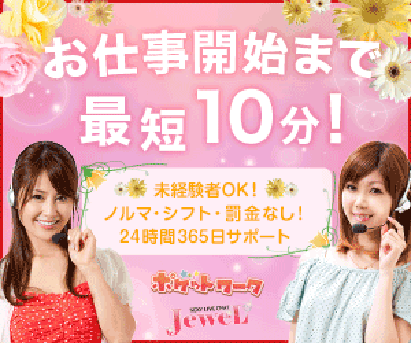 安心して稼げるライブチャットで月収数十万円の高収入を得ませんか?国内最大級のライブチャットであるジュエルライブでチャットレディとして働く方を募集中です。音声のみの配信はできませんが、顔出しをしないで配信できるのでテレフォンレディと似たような感覚で働くことができます。ジュエルライブでは2ショット、グループチャット、覗き等で稼ぐことができます。更に通勤と在宅の2つの労働形態から選ぶことができます。チャットレディ未経験の方も初心者の方も手厚いサポートを受けながら配信できるので、チャットレディデビューしちゃいましょう♪様々な働き方ができますが、時給3,060円~6,000円の報酬が発生します。是非副業としても、本業としても稼げるお仕事なのでチェックしてみてください!